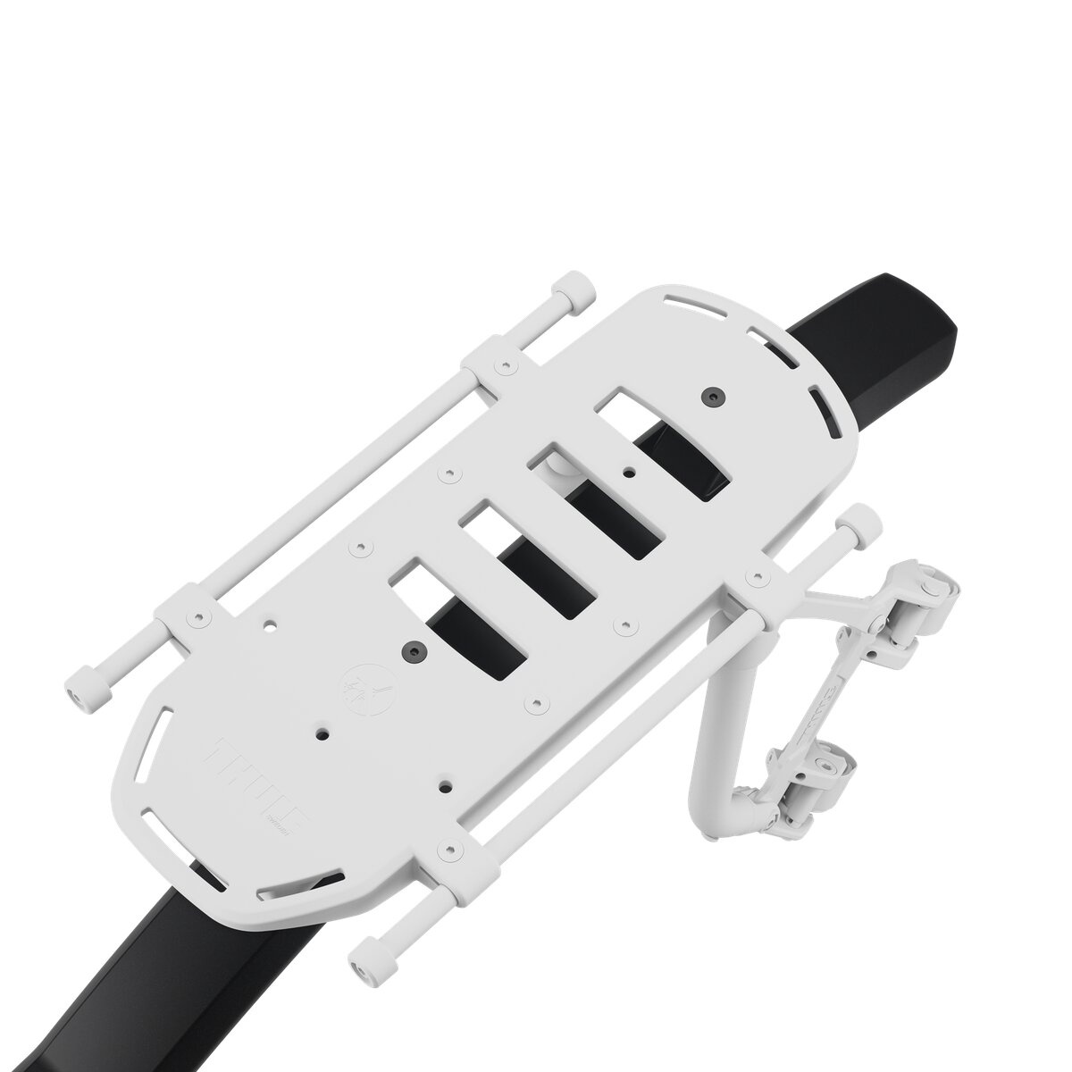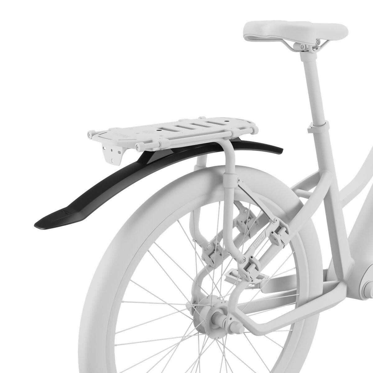Het kunststof spatbord wordt rechtstreeks op de Thule Tour Rack gemonteerd met twee schroeven. Er zijn twee mogelijke posities om de plaatsing boven het achterwiel te optimaliseren. Een handleiding is inbegrepen.