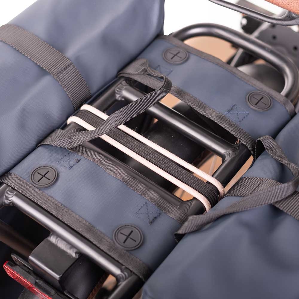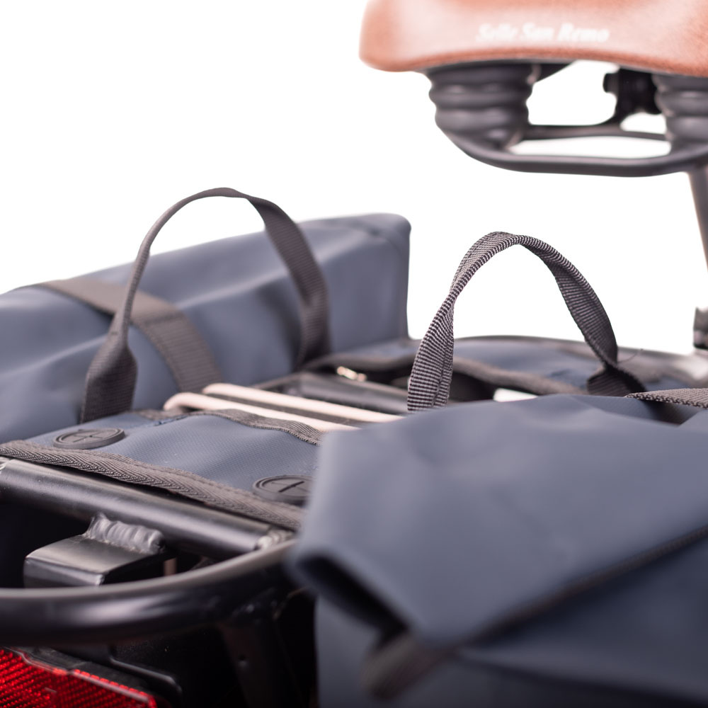 U bevestigt de tas eenvoudig en snel aan uw bagagedrager met riempjes en klittenband. De tas is bovendien geschikt voor bevestiging met het MIK-systeem. Een MIK-adapterplaat kunt u eventueel bijbestellen, zie daarvoor de gerelateerde producten onderaan deze pagina. Er is een uitsparing gemaakt in de brug van de tas, zodat u nog bij uw snelbinders kunt. Deze fietstas is ook geschikt voor e-bikes.