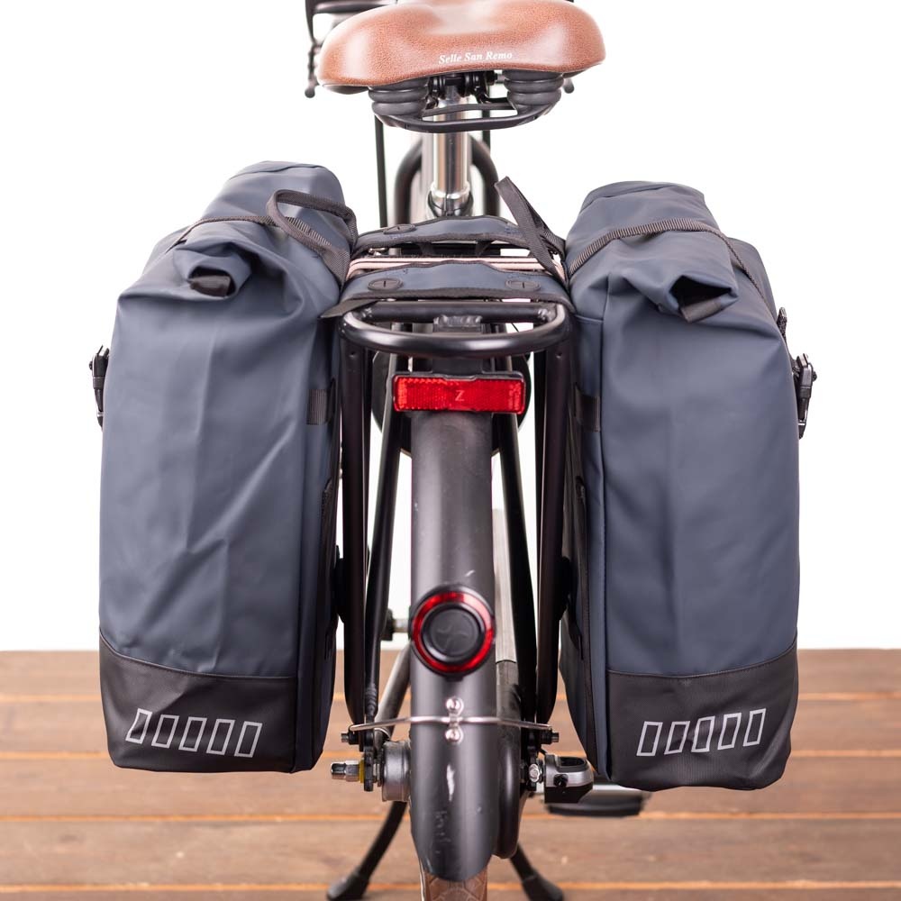 De stevige urban fietstas heeft een ruim hoofdvak aan beide zijden. Het hoofdvak sluit met een waterproof rolsluiting met een klikgesp. De band van deze sluiting is voorzien van reflecterend garen. Voor extra versteviging is de tas voorzien van een bodemplaat en in de bodem van de tas zit een afwateringsgaatje.