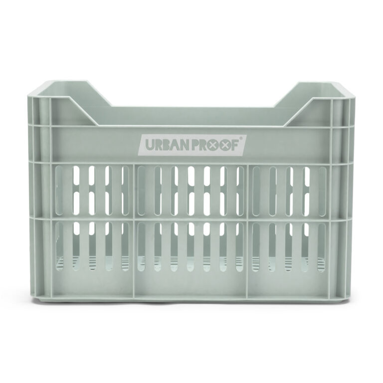 Deze duurzame mintgroene fietskrat van het Amsterdamse merk Urban Proof is gemaakt van gerecycled plastic en geproduceerd in Europa voor een kleinere ecologische voetafdruk. De vernieuwde, gemoderniseerde fietskrat heeft op de voorkant een nieuw logo met reflectie en een uitsparing om een fietslampje te plaatsen. De fietskrat is geschikt voor elke fiets en e-bike met een bagagedrager.