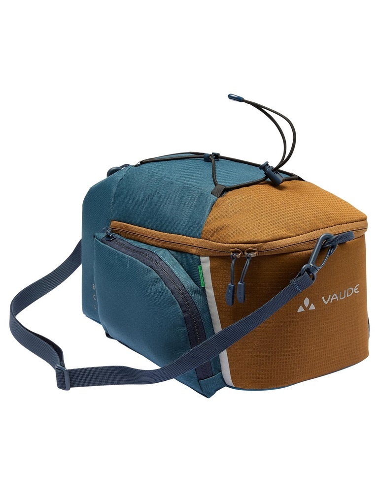 De Cycle Rack van Vaude is een praktische, modieuze bagagedragertas voor stadse fietsers. De fietstas is uitgerust met een koordspin, een afneembare schouderband, reflecterende elementen en een regenhoes. De tas in de kleuren blauw en bruin is vrijwel volledig van gerecyclede materialen gemaakt en is gemakkelijk te bevestigen met klittenband. Daarnaast is de Cycle Rack ook geschikt voor bevestiging met andere gangbare adapterplaten.