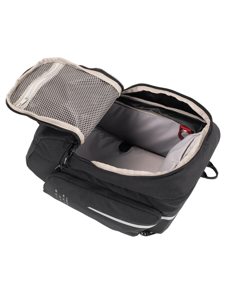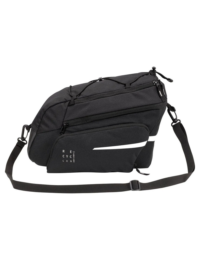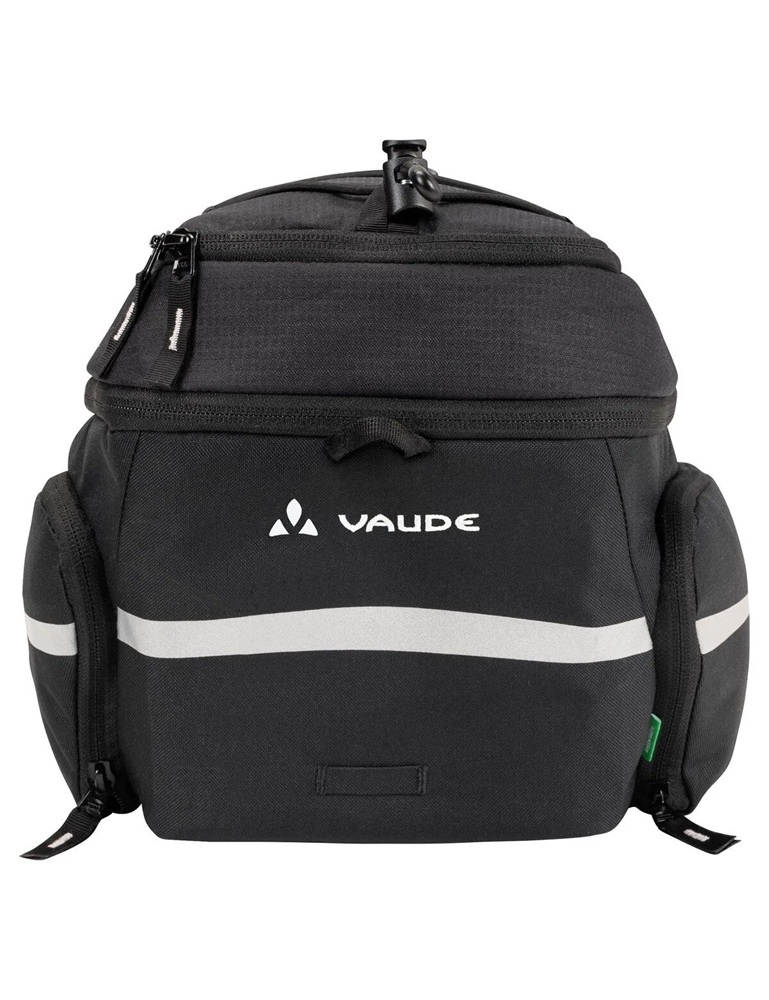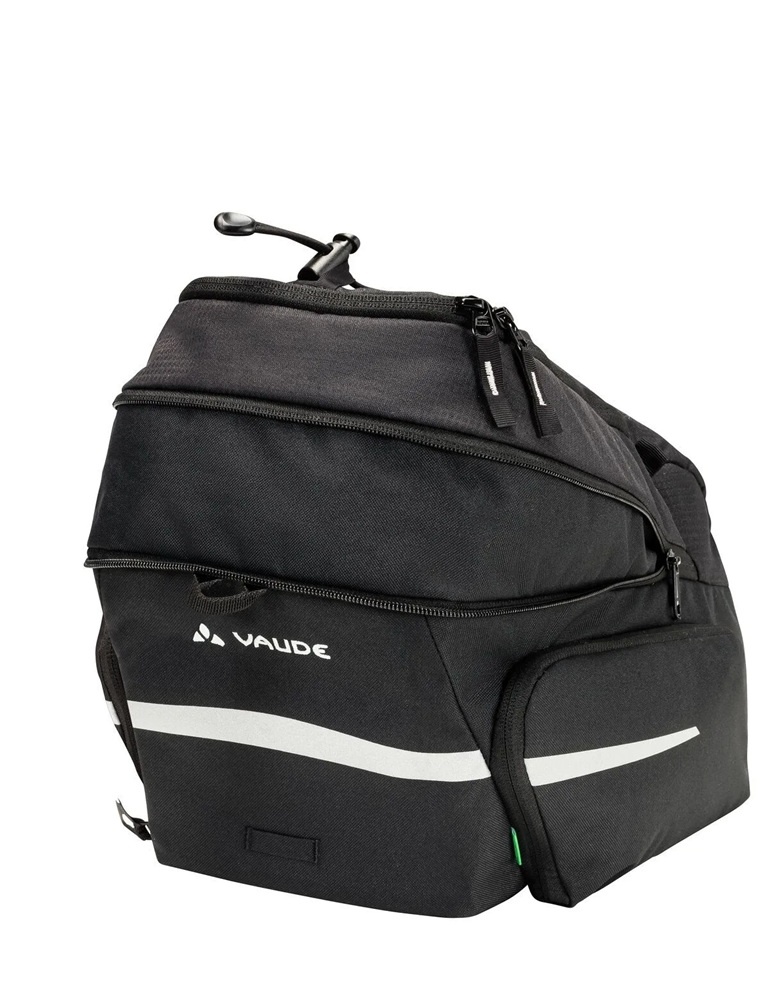 Compleet, zo is deze zwarte bagagedragertas Silkroad Plus van Vaude wel te omschrijven! De tas heeft een te vergroten volume (9 + 7 liter), een bagagenet, een afneembare schouderband, reflecterende elementen en een regenhoes. De tas is vrijwel volledig van gerecyclede materialen gemaakt en is gemakkelijk te bevestigen met klittenband. Daarnaast is de Silkroad Plus ook geschikt voor bevestiging met andere gangbare adapterplaten, zoals MIK en Uniklip.