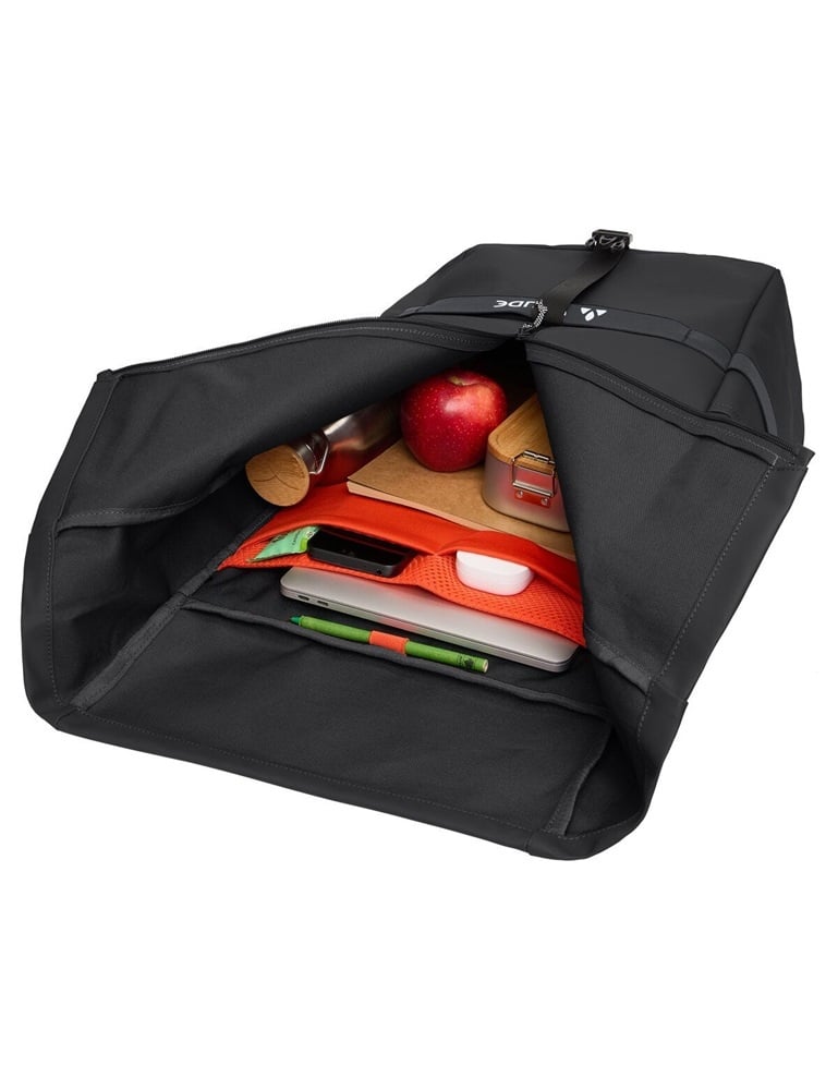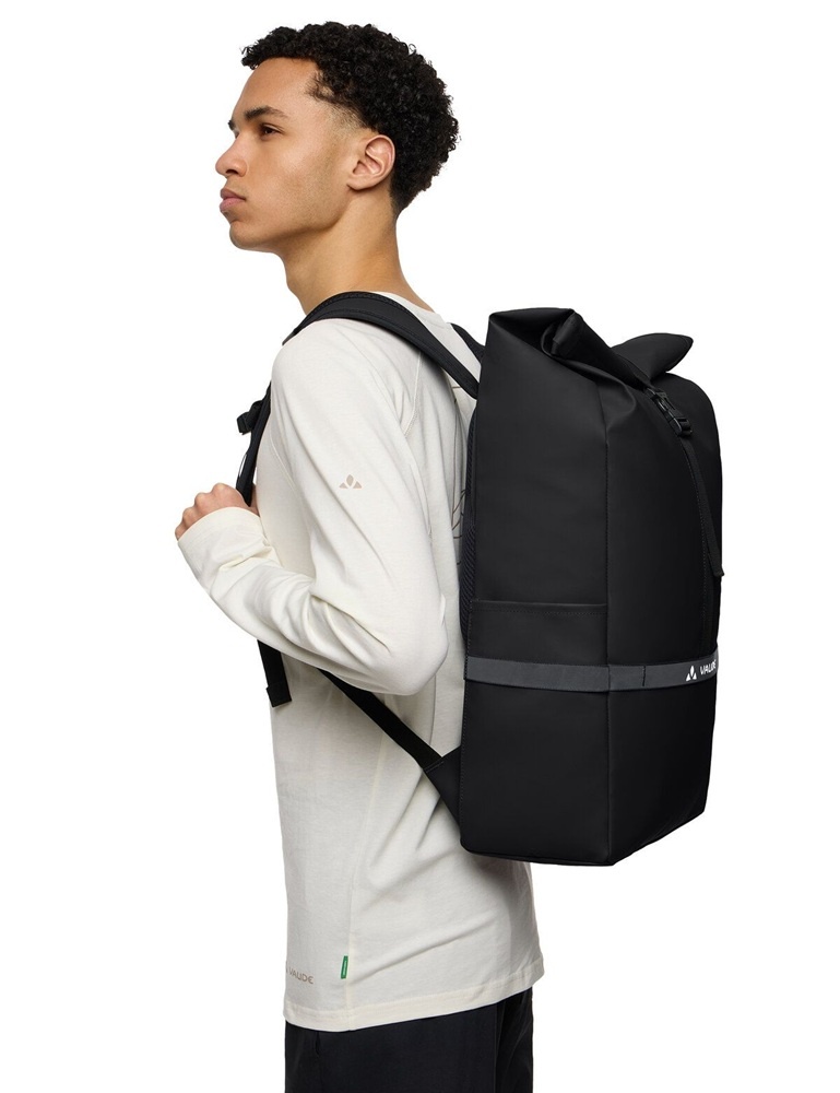 De Mineo Backpack 23 van Vaude is een praktische dagrugzak voor in de stad en voor woon-werkverkeer op de fiets. De tas is gemaakt van robuust, waterdicht en vuilafstotend materiaal en heeft een inhoud van 23 liter. De zwarte dagrugzak is voorzien van een handige indeling met een laptopcompartiment, een flessenhouder en een sleutelclip.