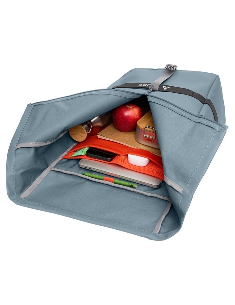 De Mineo Backpack 23 van Vaude is een praktische dagrugzak voor in de stad en voor woon-werkverkeer op de fiets. De tas is gemaakt van robuust, waterdicht en vuilafstotend materiaal en heeft een inhoud van 23 liter. De blauwgrijze dagrugzak is voorzien van een handige indeling met een laptopcompartiment, een flessenhouder en een sleutelclip.