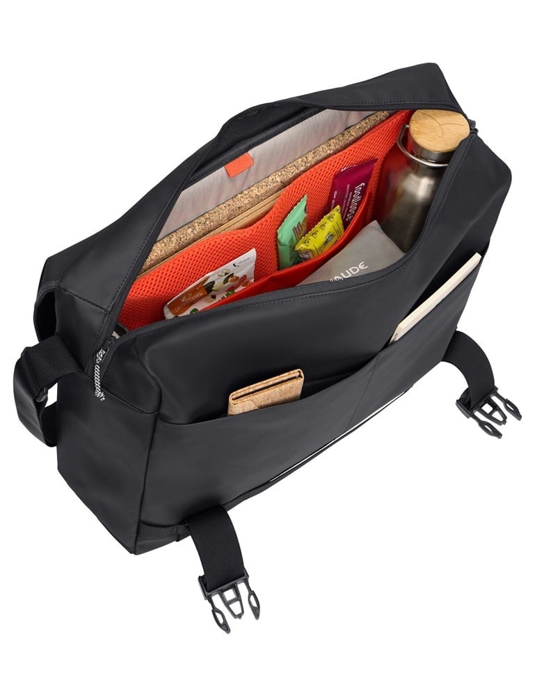 Deze messenger bag Mineo van kwaliteitsmerk Vaude is gemaakt van robuust, waterdicht materiaal en heeft een inhoud van ca. 20-22 liter. De zwarte koerierstas is voorzien van een handige indeling met meerdere opbergvakken, een gevoerd laptopcompartiment en een flessenhouder.