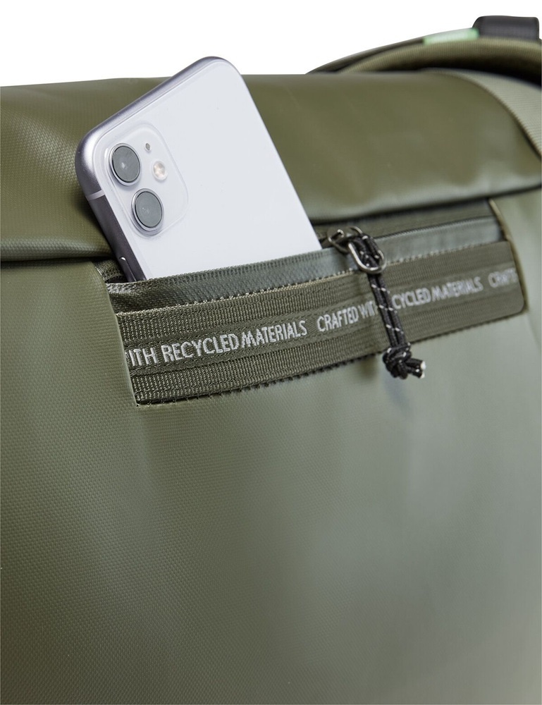 Het ruime hoofdvak biedt ruimte voor het meenemen van documenten, mappen en een 15,6 inch laptop. Daarnaast zijn er twee kleinere steekvakken. Achter de elastieken band aan de zijkant kunt u een waterfles plaatsen. Het hoofdvak sluit met een tweewegritssluiting, met daar overheen een klep met twee stevige, brede klikgespen. Voorop de tas zitten twee steekvakken voor het opbergen van kleinere spullen die u voor het grijpen wilt hebben. Bovenin aan de achterkant van de tas bevindt zich een klein ritsvakje voor het opbergen van bijvoorbeeld een smartphone of portemonnee.