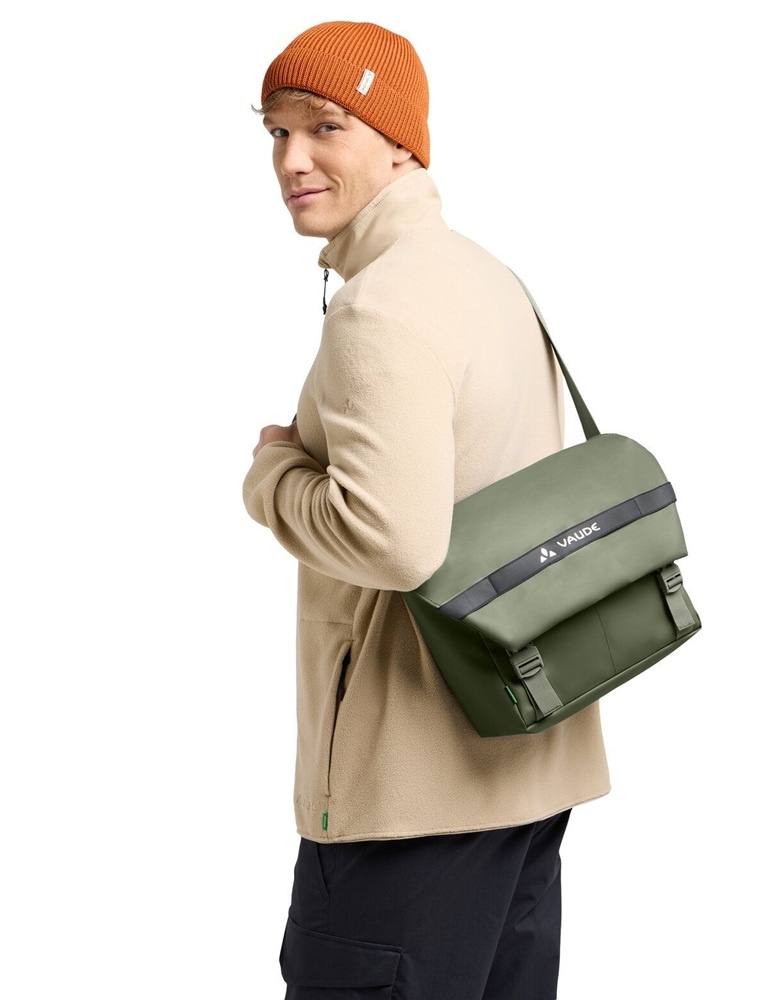 Deze stadse messenger bag Mineo van kwaliteitsmerk Vaude is gemaakt van robuust, waterdicht materiaal en heeft een inhoud van ca. 9 liter. De legergroene koerierstas is voorzien van een handige indeling met meerdere opbergvakken.