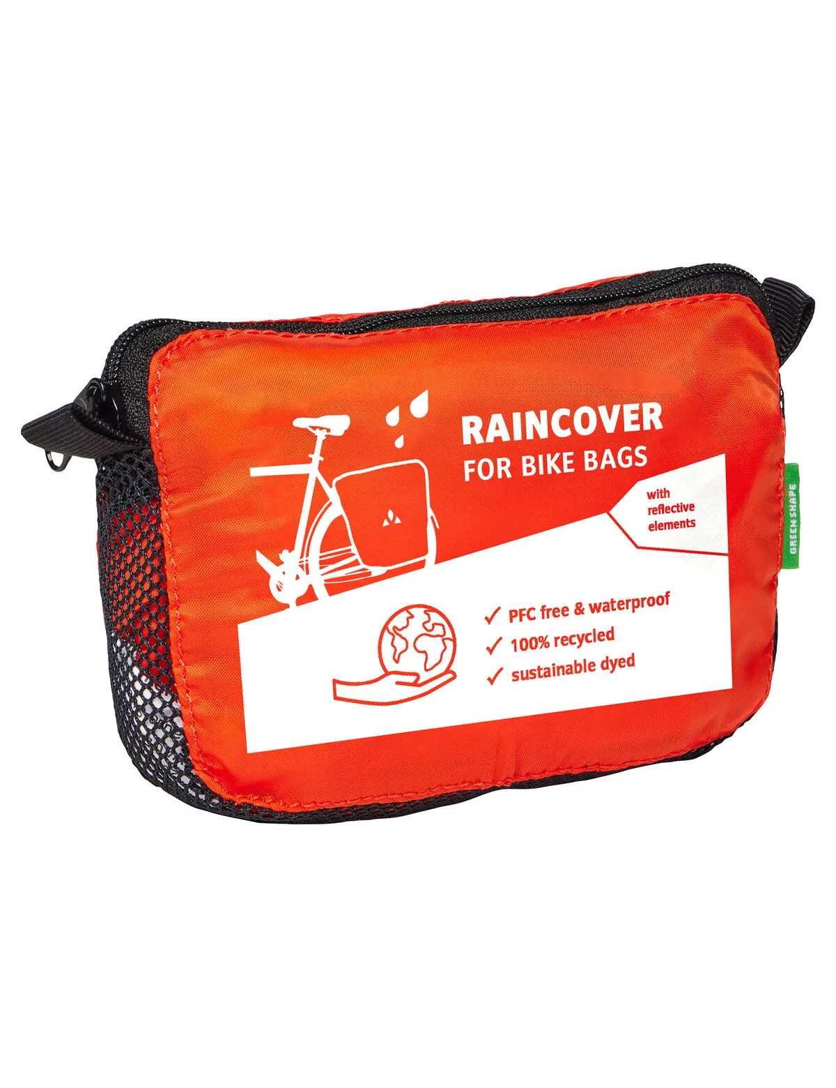 Met deze duurzame oranje regenhoes van het Duitse merk Vaude beschermt u de inhoud van uw fietstas tegen nattigheid. De hoes is geschikt voor enkele fietstassen met een inhoud tot 40 liter en weegt slechts 82 gram. Hij zit, dankzij het praktische elastiek, in een handomdraai om de tas. De hoes is voorzien van een reflecterend logo, voor een betere zichtbaarheid in het verkeer.