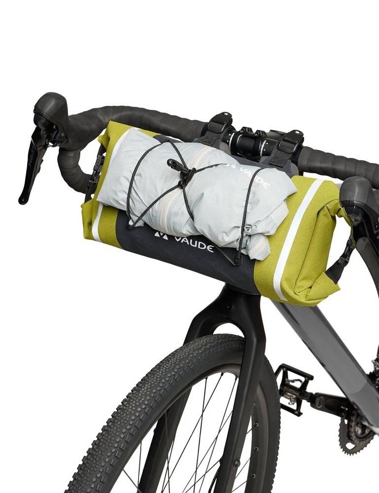 De stuurtas is aan beide kanten toegankelijk en af te sluiten met een waterproof rolsluiting met een klikgesp. Hierdoor is de tas in volume verstelbaar. Als u minder spullen meeneemt, rolt u de tas verder en compacter op. Op de voorkant van de tas zit een handige elastische koordspin, waar bijvoorbeeld een regenjack achter opgeborgen kan worden. Deze stuurtas is vooral geschikt voor lichte bagage, zoals kleding.