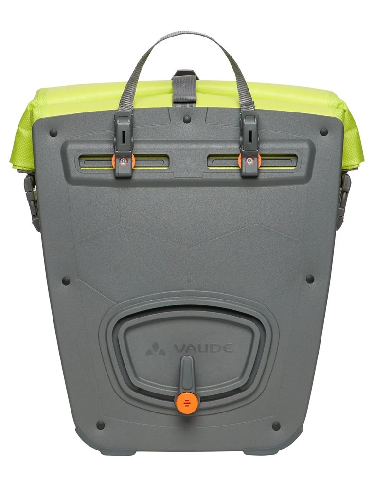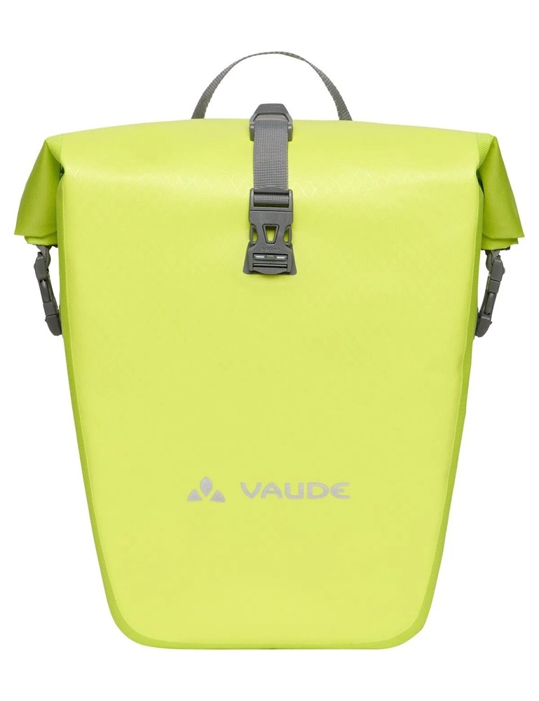 Een waterdichte tassenset Aqua Back van het merk Vaude voor achterop de fiets, van uitstekende kwaliteit. De twee enkele fietstassen zijn uitgevoerd in fluorescerend geel/groen met grijze details. Met waterdicht gelaste naden, een innovatief bevestigingssysteem en een reflecterende opdruk. Van deze twee robuuste enkele achtertassen heeft u jarenlang plezier!