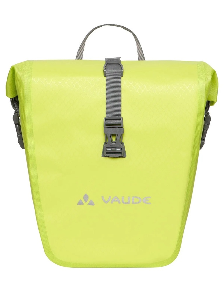 Deze fraaie set Aqua Front-voorwieltassen van Vaude is van hoge kwaliteit! De set bestaat uit twee losse tassen uitgevoerd in fluorescerend geel/groen met grijze details. De tassen zijn waterdicht gelast en dankzij de rolsluiting in grootte verstelbaar. Gemakkelijk te bevestigen en met afneembare schouderband.