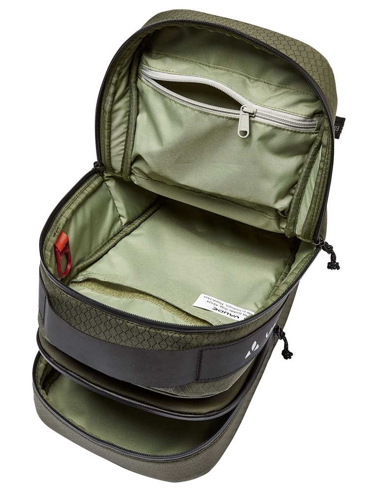 De Cyclist Saddle Bag is een praktische zadelpentas van het kwaliteitsmerk Vaude, met een inhoud van ca. 9 liter. De khakigroene zadeltas biedt met twee ruime ritsvakken veel ruimte, en is ook uitgerust met een regenhoes. De tas wordt met een KLICKfix-adapter aan de zadelpen bevestigd. De zadeltas is een slimme fietstas voor langere fietstochten of voor dagelijks gebruik.