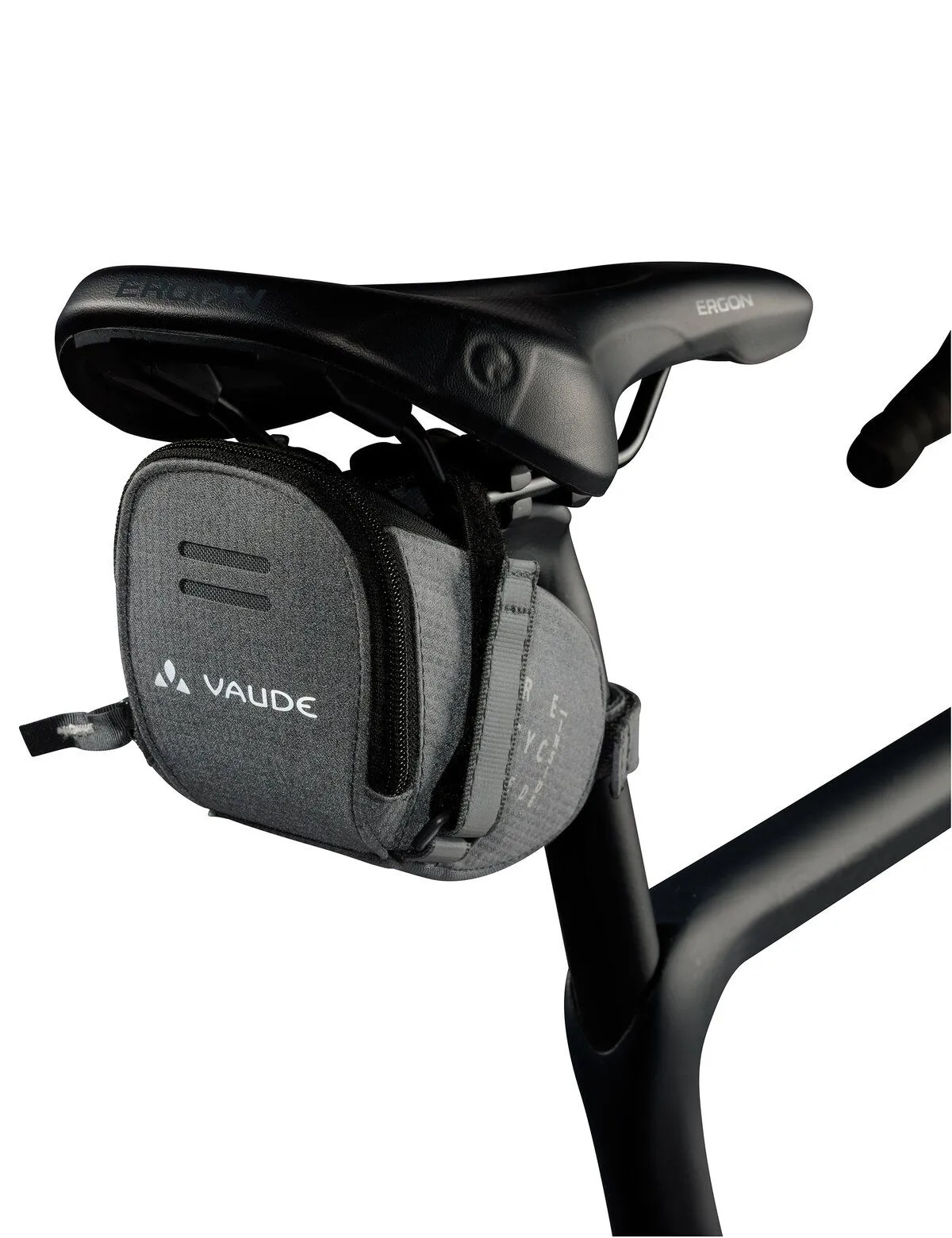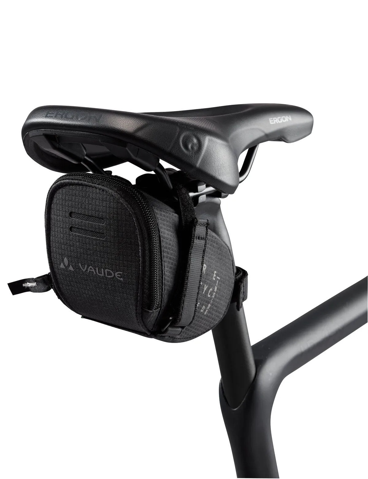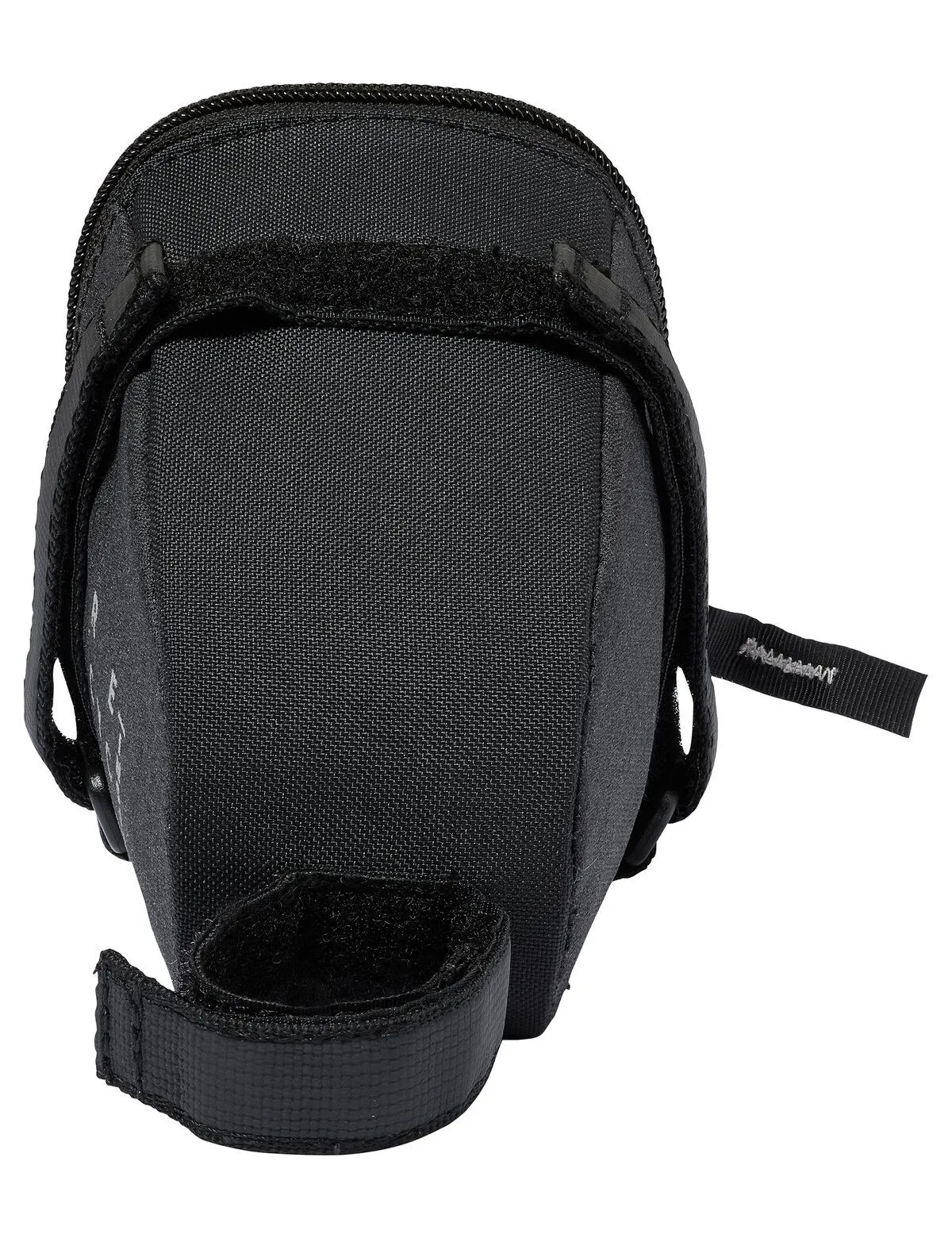 Een compacte zadeltas van Vaude voor fietsgereedschap, zeer licht van gewicht en gemakkelijk onder het zadel te bevestigen met klittenband. Deze zwarte Race Light L Luminum is deels gemaakt van reflecterend materiaal, voor extra zichtbaarheid in het verkeer.