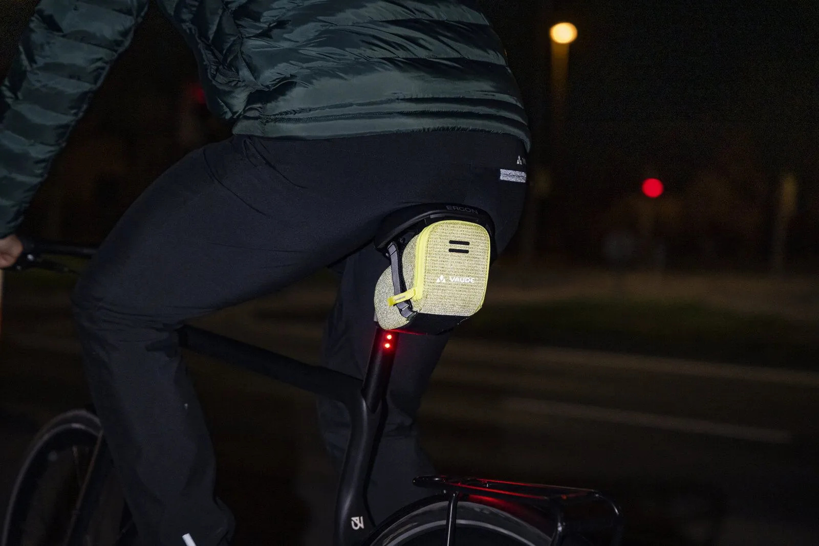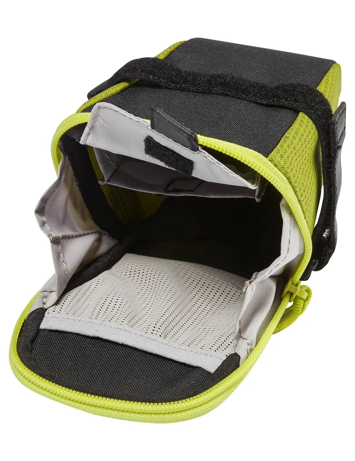 Een compacte zadeltas van Vaude voor fietsgereedschap, zeer licht van gewicht en gemakkelijk onder het zadel te bevestigen met klittenband. Deze felgroene Race Light XL Luminum is deels gemaakt van reflecterend materiaal, voor extra zichtbaarheid in het verkeer.