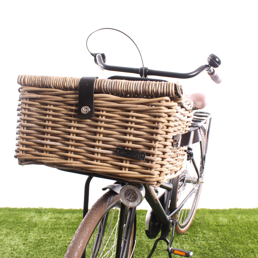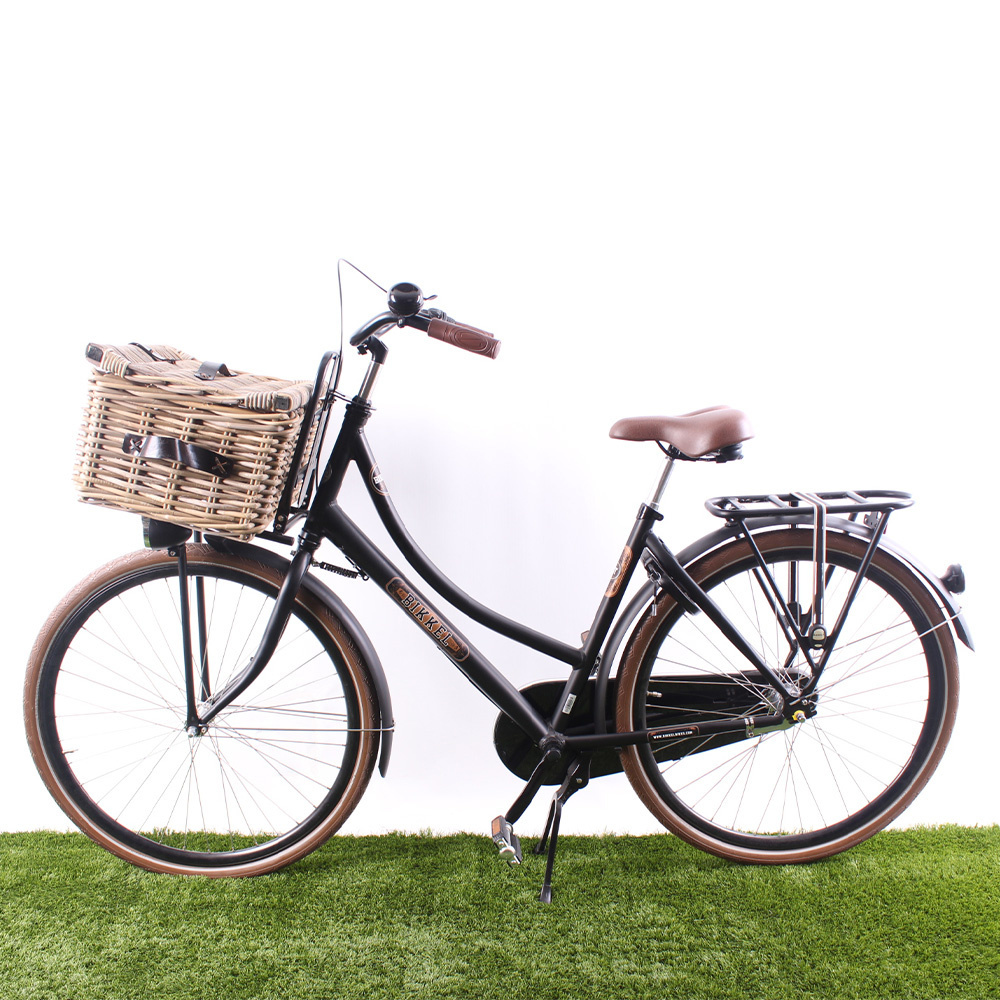 De mand is gemaakt van riet en bevat mooie details, zoals donkerbruine handvatten in lederlook om de mand te tillen. De picknickmand is voorzien van een deksel, dat eenvoudig geopend en gesloten kan worden. Daarnaast kan het deksel vastgezet worden met een sluiting. Op deze manier kunt u al uw spullen veilig en beschermd tegen vuil vervoeren. De inhoud van de picknickmand met maat L is maar liefst 60 liter. U bevestigt de picknickmand op de voordrager van uw fiets.
