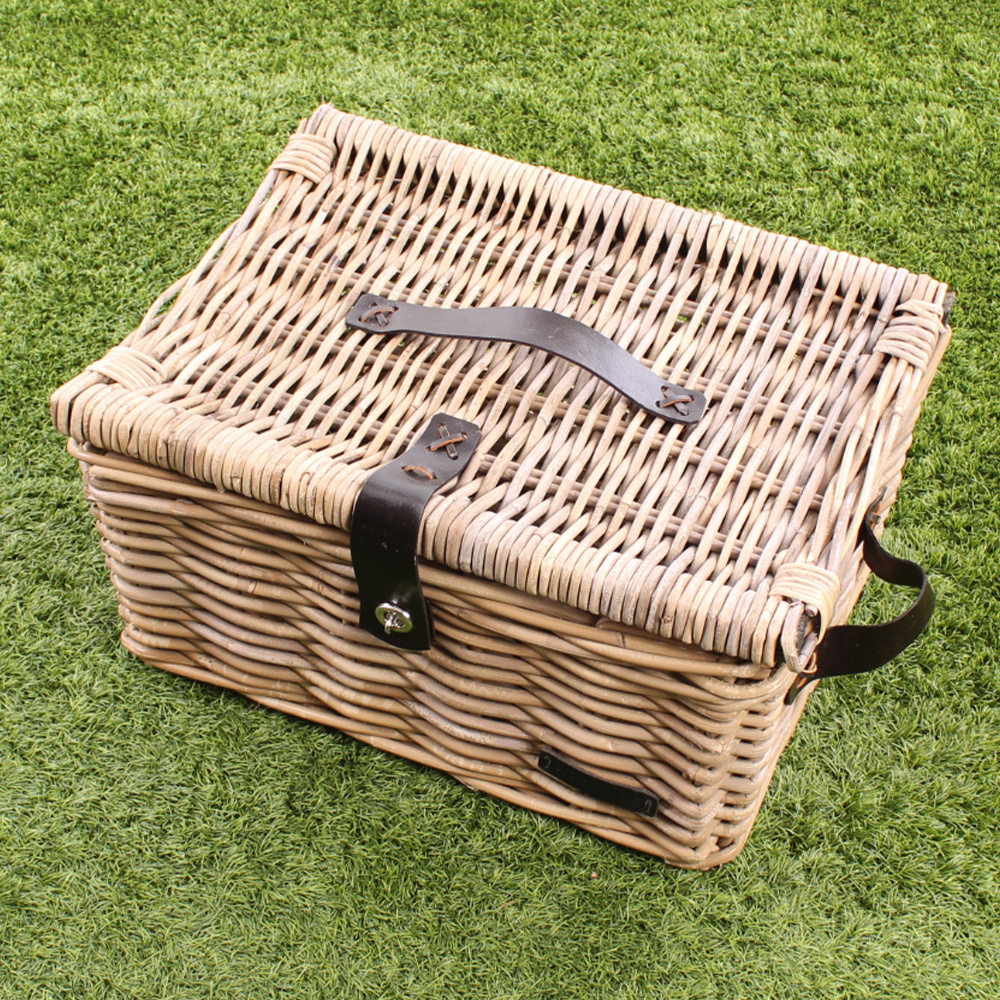 Let op: op de eerste foto ziet u de picknickmand in de grijze uitvoering. Op de overige foto's ziet u dezelfde mand in de kleur bruin.