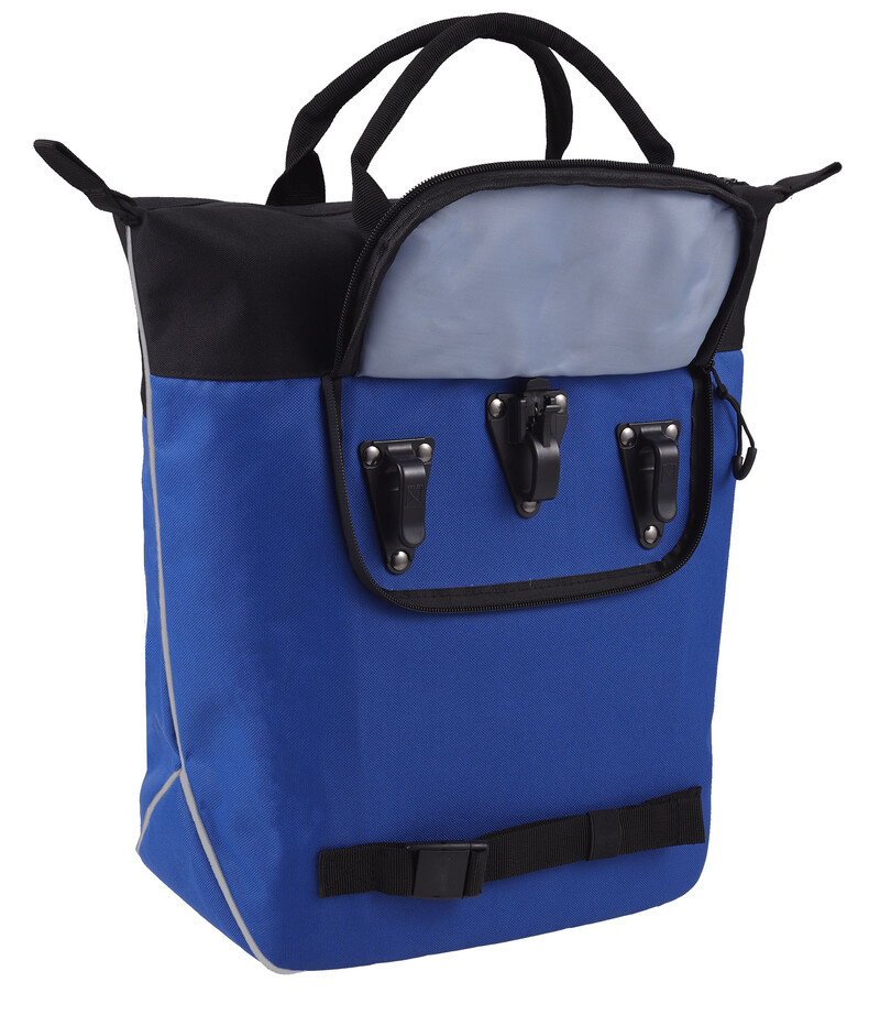 Deze blauwe Daily Shopper van Willex is gemaakt van waterafstotend polyester. De enkele fietstas heeft een inhoud van 21 liter en is voorzien van bodemvoetjes, reflectie, een regenhoes en gemakkelijke bevestigingshaken. De Daily Shopper is een handige en hippe tas om mee te winkelen of boodschappen te doen!