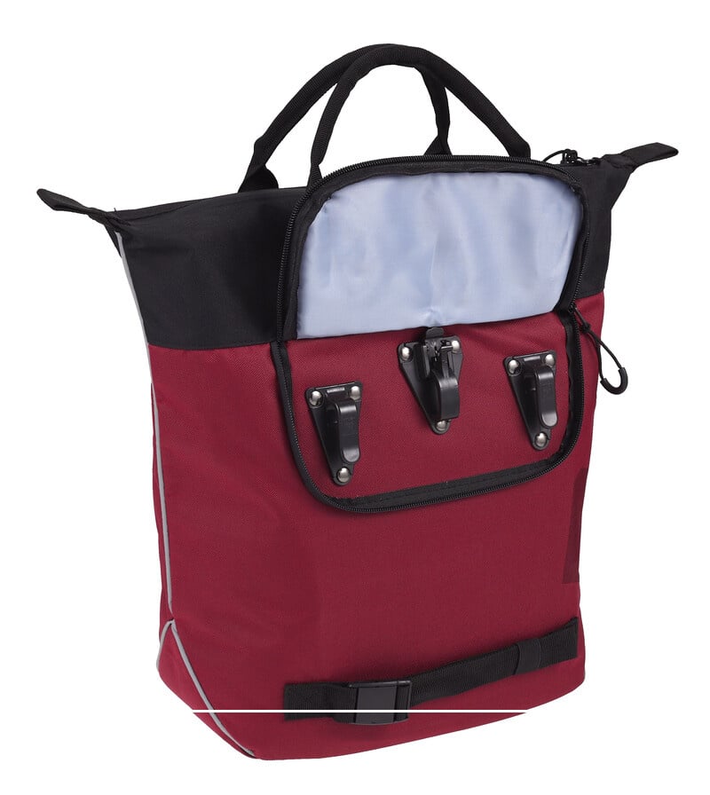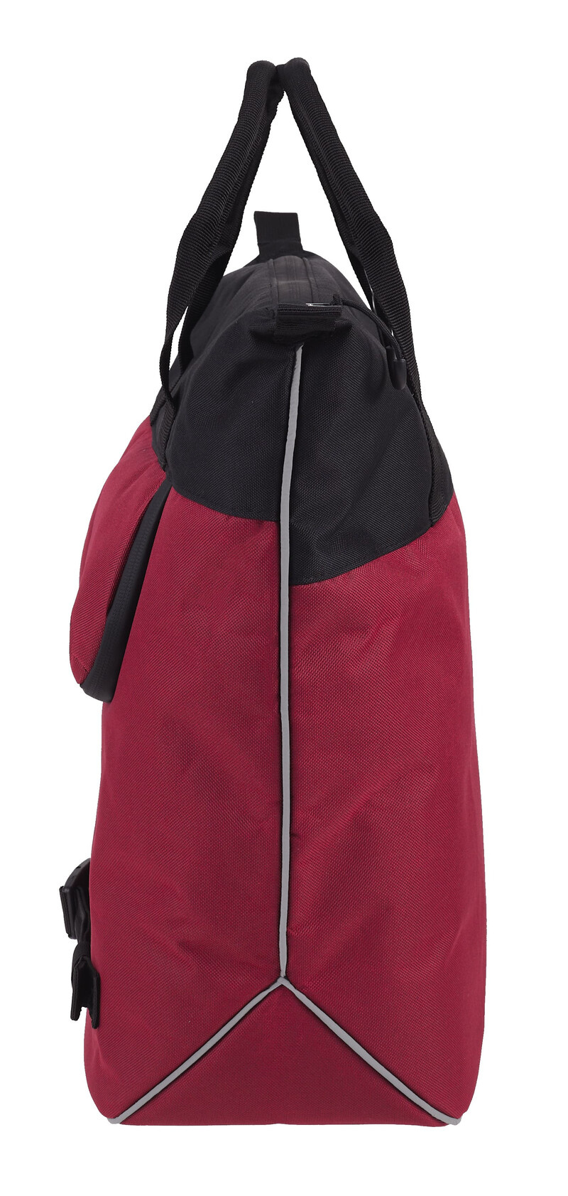 Deze bordeauxrode Daily Shopper van Willex is gemaakt van waterafstotend polyester. De enkele fietstas heeft een inhoud van 21 liter en is voorzien van bodemvoetjes, reflectie, een regenhoes en gemakkelijke bevestigingshaken. De Daily Shopper is een handige en hippe tas om mee te winkelen of boodschappen te doen!