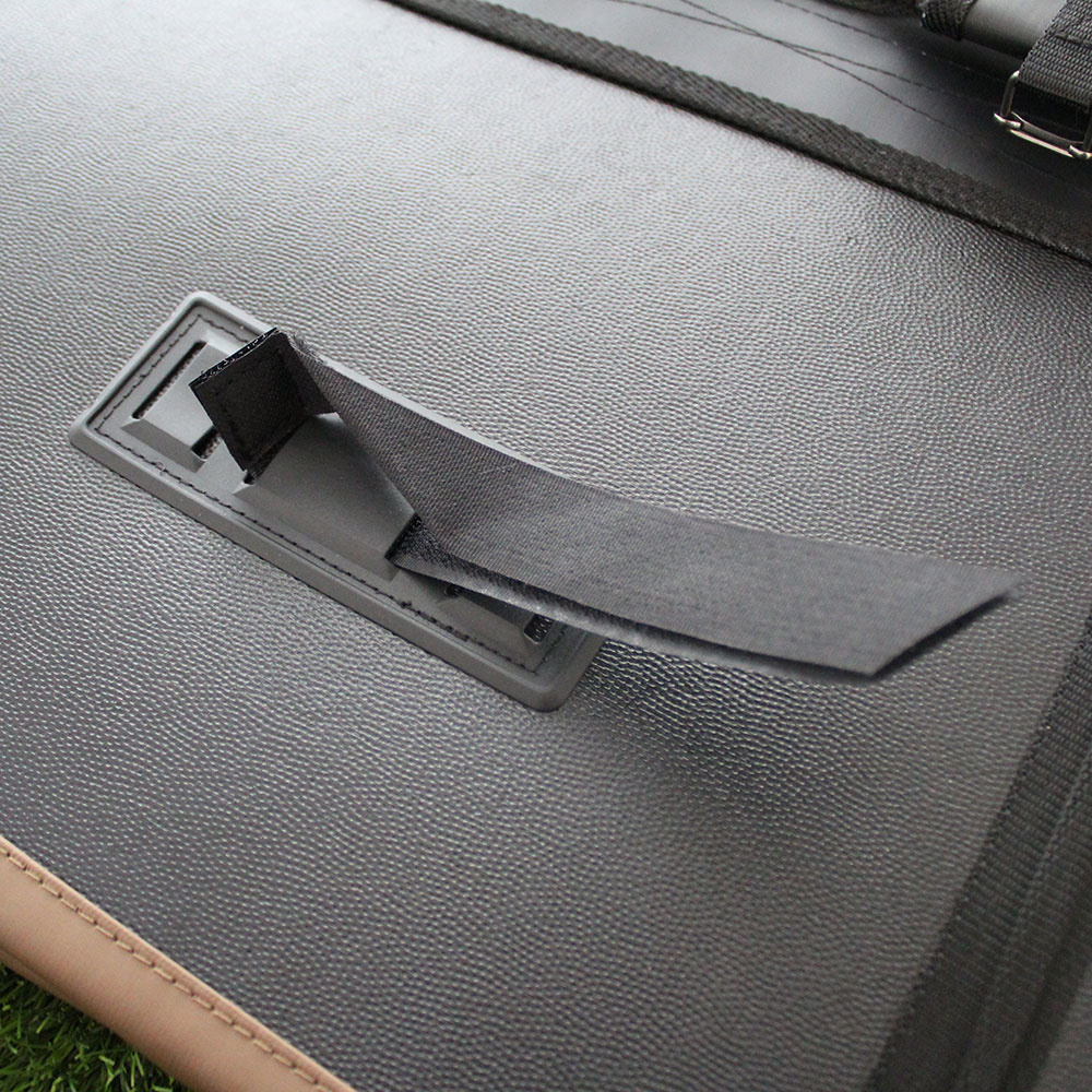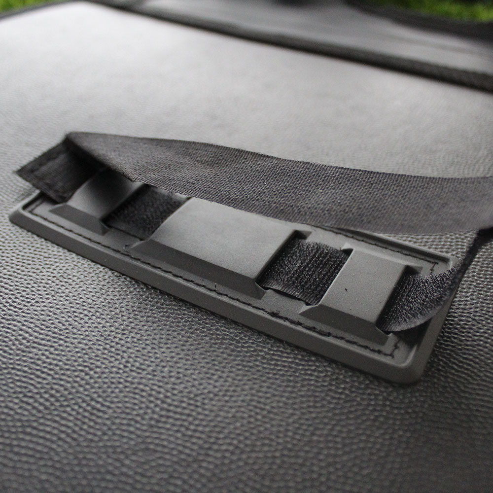 Extra grote gespen en dito reflectievlakken aan de achterzijde maken deze tas helemaal af. Bijna, want optioneel kunt u er nog de los verkrijgbare extra wielbeschermers aan toevoegen, naast de buitengewoon handige afneembare tassendrager.