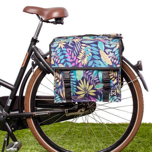 Deze fraaie dubbele fietstas met een trendy print van groene bladeren is gemaakt van waterdicht en waterafstotend polyester. De tas is voorzien van een groot reflectievak, zodat u goed zichtbaar bent in het donker. Deze fietstas van kwaliteitsmerk Willex is uitermate geschikt voor dagelijks gebruik en past ook op e-bikes.