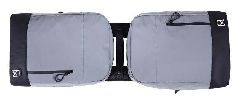 Deze grijze dubbele Multitas van Willex heeft een inhoud van 34 liter. De sportieve tas is voorzien van een laptopvak, een regenhoes en eenvoudige bevestiging met riempjes. De tas is gemaakt van waterafstotend, reflecterend polyester en ook het logo voorop de tas is reflecterend. Een praktische dubbele fietstas waarmee u gezien wordt in het verkeer!