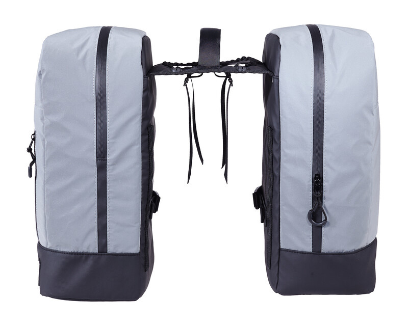 U bevestigt de tas eenvoudig op uw fiets met riempjes. Onderaan de tas zit nog een handige verstelbare montageband met een klikgesp. Het tussenstuk tussen de twee tassen is voorzien van een praktische handgreep. De fietstas is ook geschikt voor bevestiging met MIK- en Racktime-bagagedragersystemen (niet inbegrepen). Daarnaast is de tas geschikt voor het gebruik van wielbeschermers (los verkrijgbaar). Ook geschikt voor e-bikes!