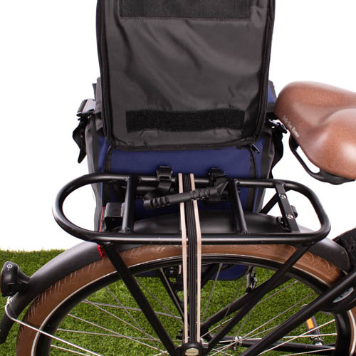Met de flap met rits aan de achterkant van de tas dekt u de bevestigingshaken van de fietstas af, wanneer u de tas als rugtas draagt. Als u de tas aan de drager van uw fiets wilt bevestigen, ritst u de flap los zodat de haken tevoorschijn komen. De flap zet u boven de haken vast met klittenband en de schouderbanden van de rugtas kunt u netjes opbergen in een ritsvak aan de achterkant van de tas. De gewatteerde schouderbanden zijn verstelbaar, en u kunt de tas ook dragen aan de afneembare, verstelbare schouderband.