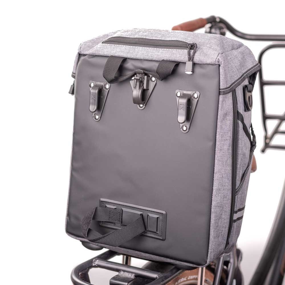 Deze ruime enkele fietstas is dankzij de afneembare (en verstelbare) schouderband tevens te gebruiken als schoudertas. Naast dit meeneemgemak zijn er nog veel andere details die deze veelzijdige tas voor velen de moeite waard maken.