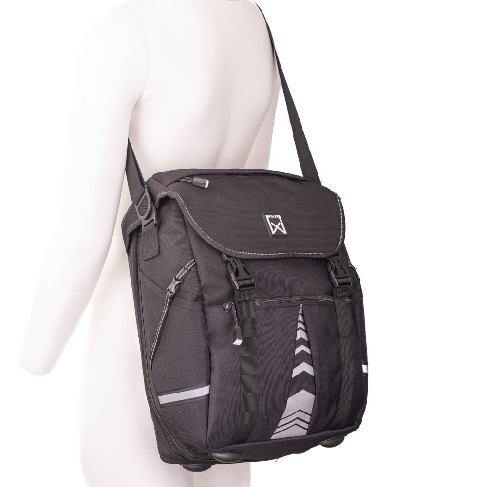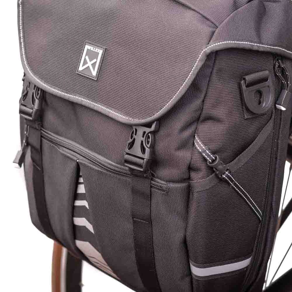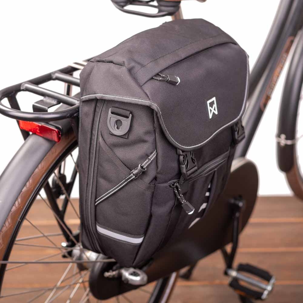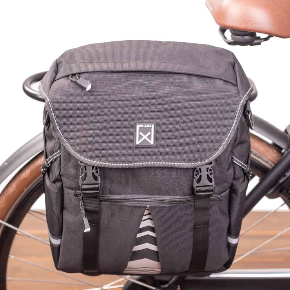 Bovendien heeft deze fietstas eveneens bescherming in huis als het gaat om belangrijke zichtbaarheid; om te helpen voorkomen dat iemand u over het hoofd zou zien bij schemer en donker. Namelijk: zichtbaarheid in de vorm van een reflecterende bies, opvallend reflecterende bedrukking én gepatenteerde Willex® reflectie op de regenhoes.