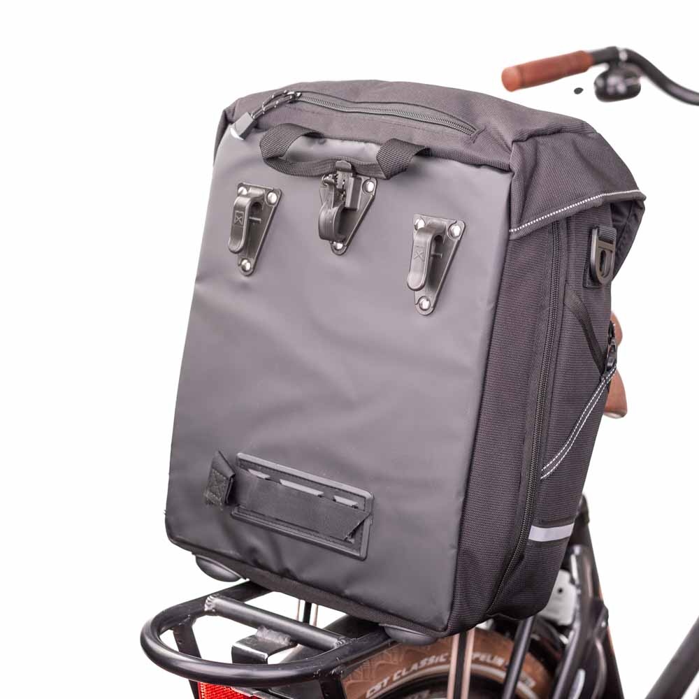 Deze ruime enkele fietstas is dankzij de afneembare (en verstelbare) schouderband tevens te gebruiken als schoudertas. Naast dit meeneemgemak zijn er nog veel andere details die deze veelzijdige tas voor velen de moeite waard maken.