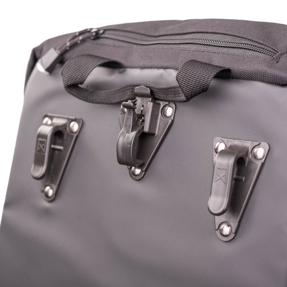 Deze enkele fietstas heeft bovendien: een binnenhoes die met een koord strak is dicht te trekken, (smalle) open zijvakken, goede klikgespen, praktische handgreep, makkelijk beet te pakken ritssluiting-lussen en brede voetsteuntjes voor het stabiel kunnen neerzetten van deze pakaftas op de grond.