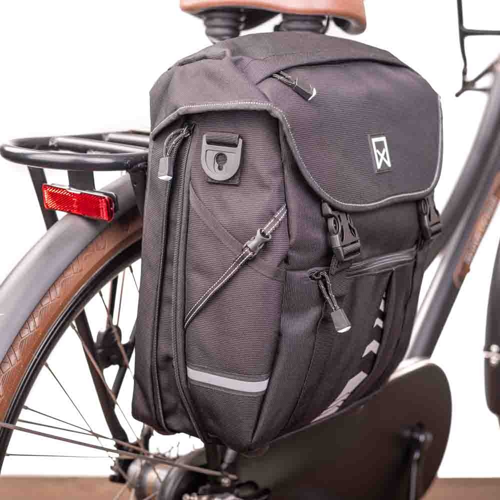 Eén van de fietstassen uit de uitgebreide, kenmerkende Willex-serie '1200' die misschien wel het best past bij uw eigen fietstas-behoefte, is deze met rits vergrootbare zwarte pakaftas van 14 liter.
