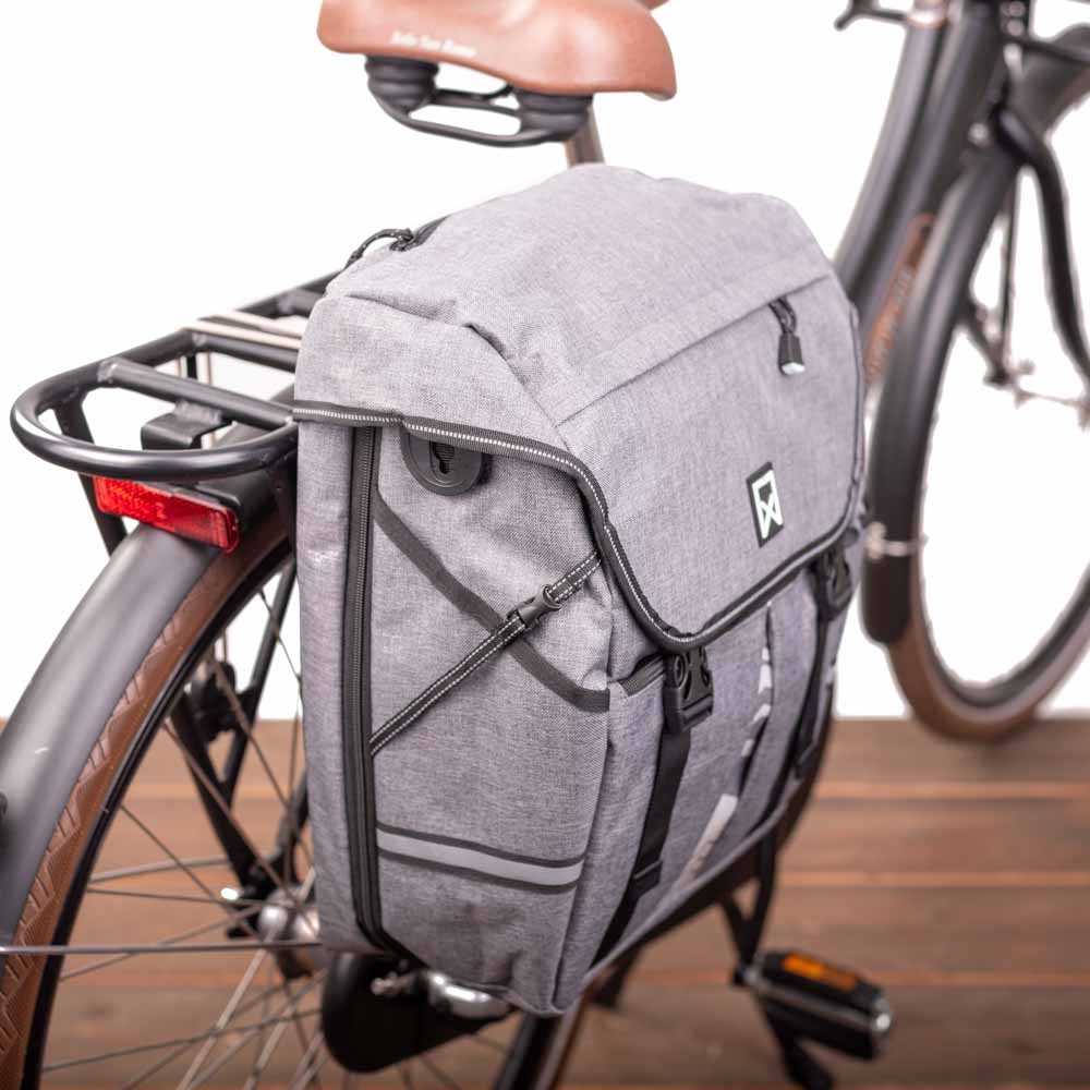 Zoekt u een grote enkele fietstas? Misschien is dit wel dé tas die tegemoetkomt aan uw wensen op het gebied van een tas voor op de fiets. Deze behoort tot de uitgebreide, kenmerkende Willex-serie '1200' en is een ruime, met rits vergrootbare, grijze pakaftas van liefst 21,5 liter.