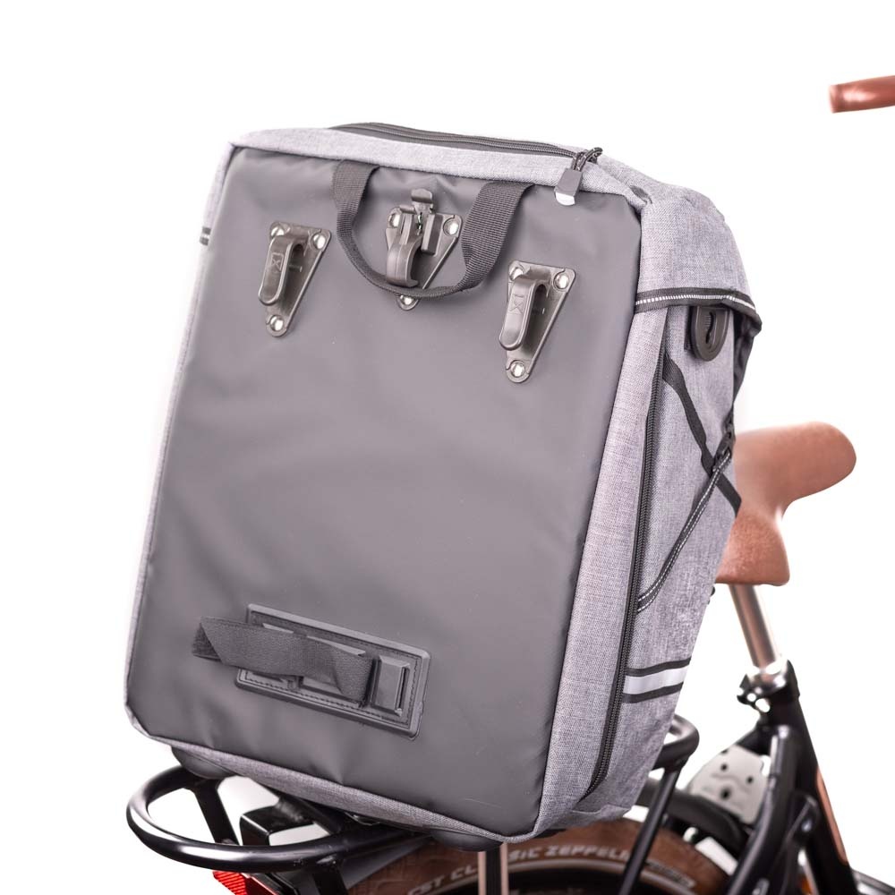 Deze enkele fietstas XL 1200 is dankzij de afneembare (en verstelbare) schouderband tevens te gebruiken als schoudertas. Naast dit meeneemgemak zijn er nog veel andere details die deze veelzijdige tas voor velen de moeite waard maken.