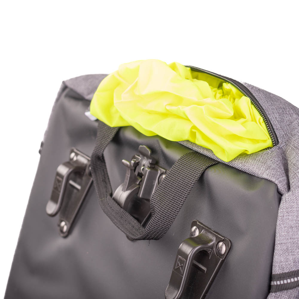 Sowieso kan de Pakaftas XL 1200 tegen een buitje, want het materiaal bestaat uit waterdicht en waterafstotend polyester. En voor de grote buien en langduriger fietstochten ontvangt u - inclusief bij uw bestelling - een grote accentrijke regenhoes.