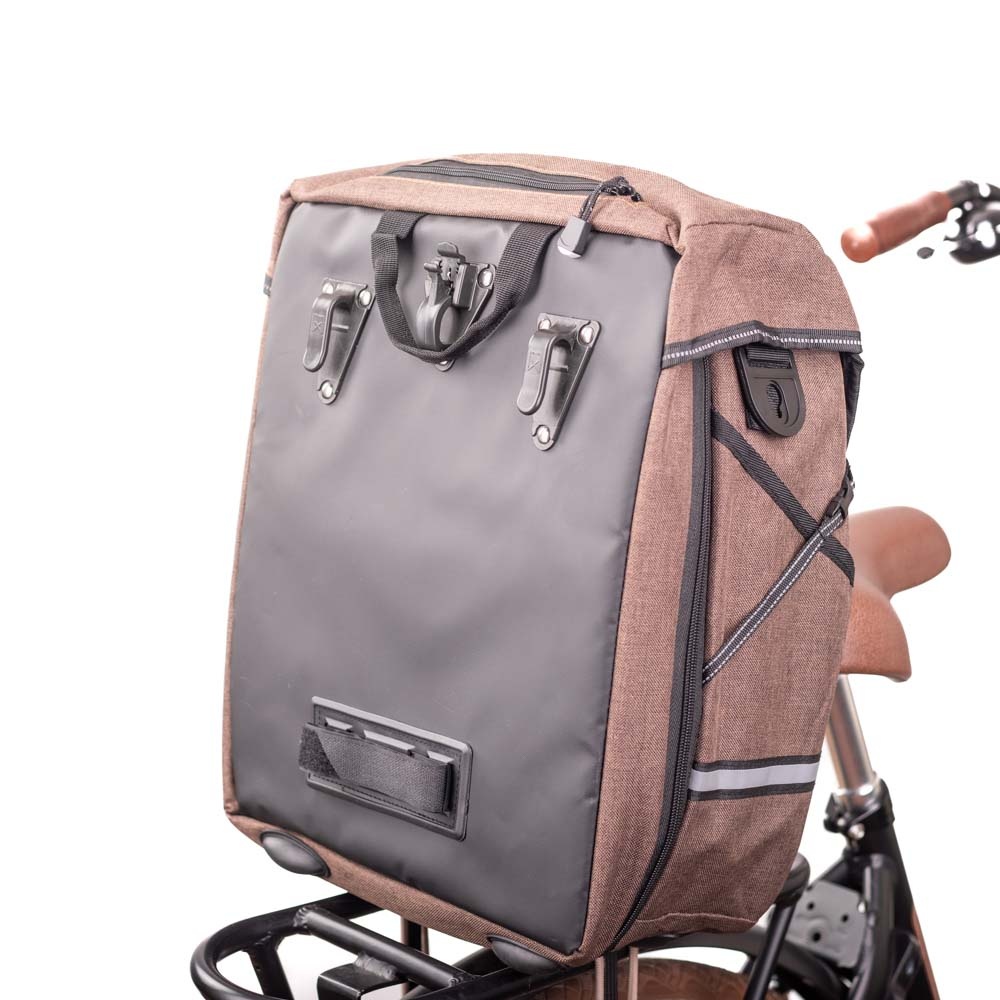 Deze enkele fietstas XL 1200 is dankzij de afneembare (en verstelbare) schouderband tevens te gebruiken als schoudertas. Naast dit meeneemgemak zijn er nog veel andere details die deze veelzijdige tas voor velen de moeite waard maken.