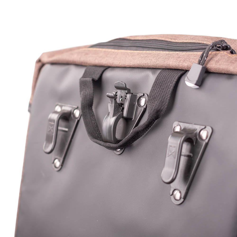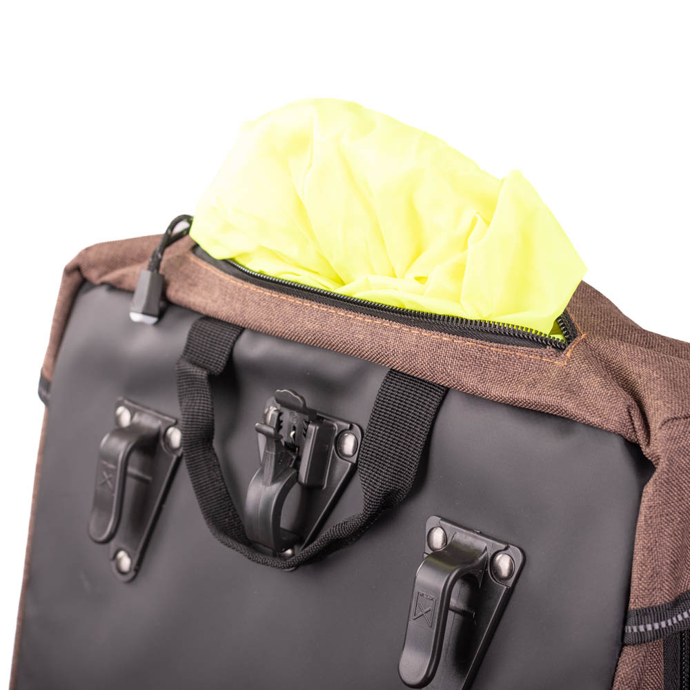 Sowieso kan de Pakaftas XL 1200 tegen een buitje, want het materiaal bestaat uit waterdicht en waterafstotend polyester. En voor de grote buien en langduriger fietstochten ontvangt u - inclusief bij uw bestelling - een grote accentrijke regenhoes.