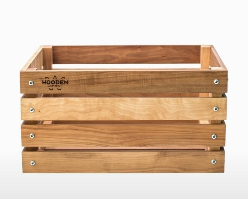 De krat is behalve als fietskrat ook te gebruiken als houten opbergkist!